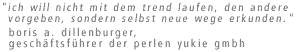 2002 wurde die Perlen Yukie GmbH gegründet, die unter der Geschäftsführung von Boris A. Dillenburger die Geschäfte der Perlen Yukie Dillenburger KG
